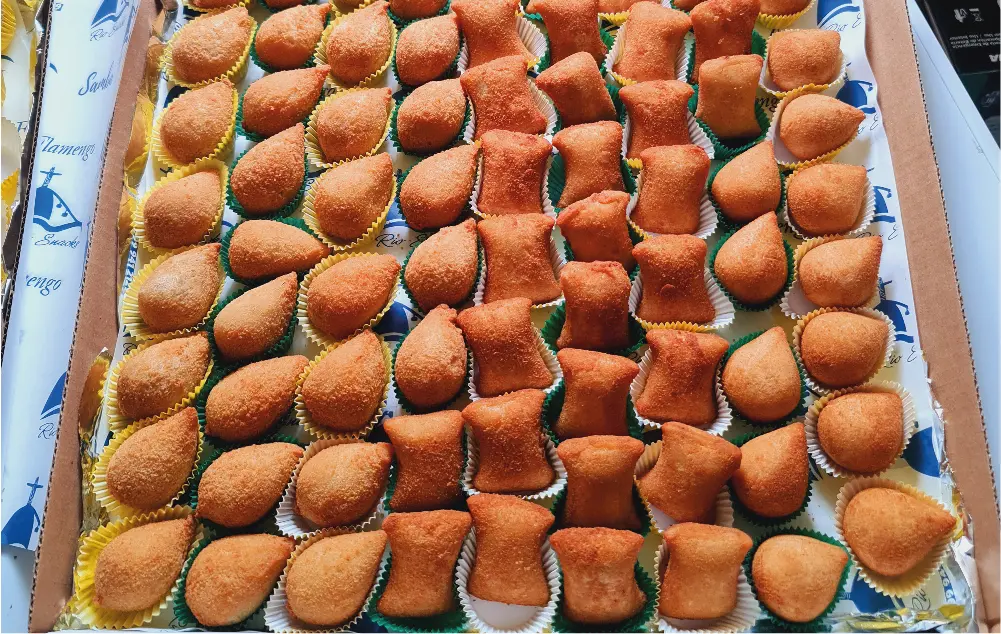 10 coxiñas de verde con camarón + 10 coxiñas de pollo + 10 coxiñas de costilla ahumada + 1 Cola (1.5 o 1.6 l)